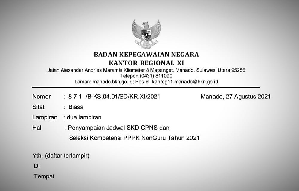 Pengumuman sekretaris daerah kota manado selaku ketua tim seleksi penerimaan casn dilingkungan pemerintah kota manado tahun 2021 tentang jadwal seleksi.